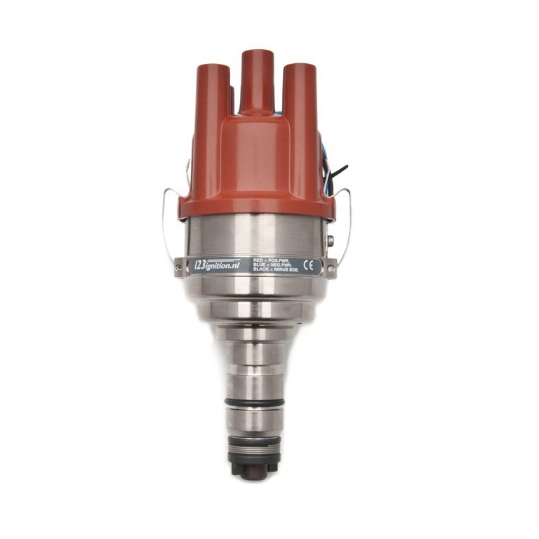 This 123 Ignition Distributor replaces Lucas distributors for engines in Austin Healey Sprites and MG Midgets. It offers 16 different advance-curves that can be selected via a little switch which enables you to fine tune your engine. It also offers automatic dwell, spark balancing, automatic power cut off one second after engine stops. This distributor is for positive earth only vehicles.