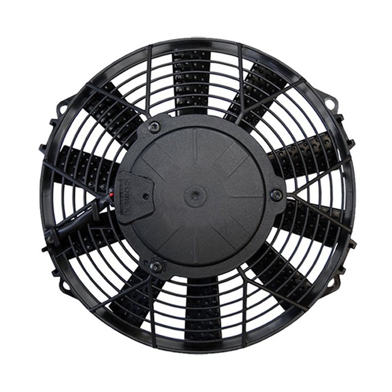 A high quality electric radiator fan engineered by Revotec for vehicle applications. Waterproof to IP68, balanced blades, lightweight, low noise (a special feature of this fan), finger guard and the bearings rated to run continuously. Depth 56mm. Air Flow 1860 cubic metres per hour. Current Draw 7.2 amps. Weight of fan 1.3 kg It is necessary to select and order the mounting set and controller separately (both positive and negative earth are available), depending on your requirements. A manual override switch is also available