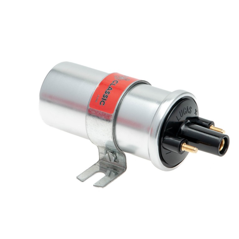 The particular feature of this coil is that it suits the Lucas Opus Ignition System as fitted to Aston Martin, Jaguar, Land Rover, Rolls-Royce, Rover, Citroen, Fiat, Peugeot, Renault, Skoda and others. Overall height 150mm, body height 100mm, diameter 50mm, primary coil resistance 0.7 ohms and secondary coil resistance 7.2 k/ohms.