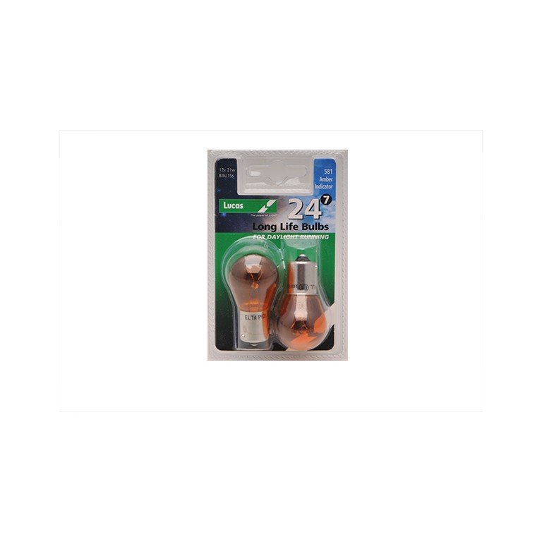 Lucas 581 amber indicator bulbs, 2 pack 12V 21W