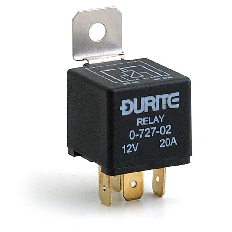 A Relay is an electrical switch which uses low wattage current to open another switch. It is this second switch that carries and switches the high wattage current. This is a modern encapsulated general purpose Relay. It has a bracket with a fixing hole or can be used with a relay socket. It operates on 12 volts up to 20 amps and is normally closed. The second switch opens when the first is energised. Base is marked 87a/86/85/30.