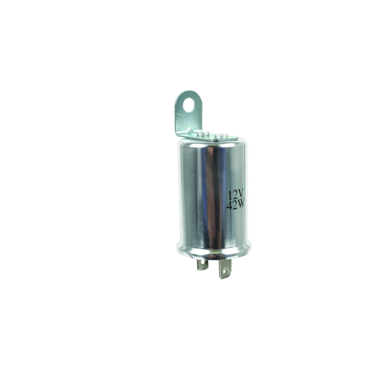 Modern version of early type of Lucas FL5 Flasher Unit with Lucar connectors, 35010 SFB100. Maximum load 42 watts.