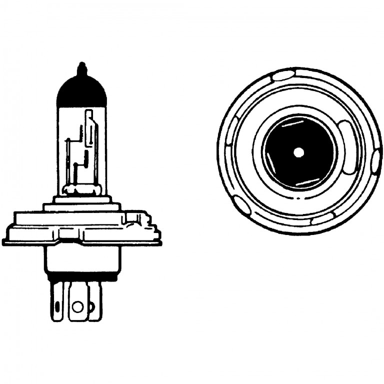 This is a special Halogen bulb for upgrading UEC headlamps. 12 volt, 60/55 watts, P45t cap with triple Lucar connectors. LLB012