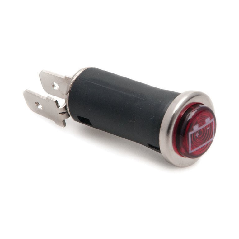 16mm diameter, requires hole 13mm diameter and a bulb LLB281(order separately). Red lens with battery symbol. A range of warning lamps of this type is available with different symbols and in various colours.