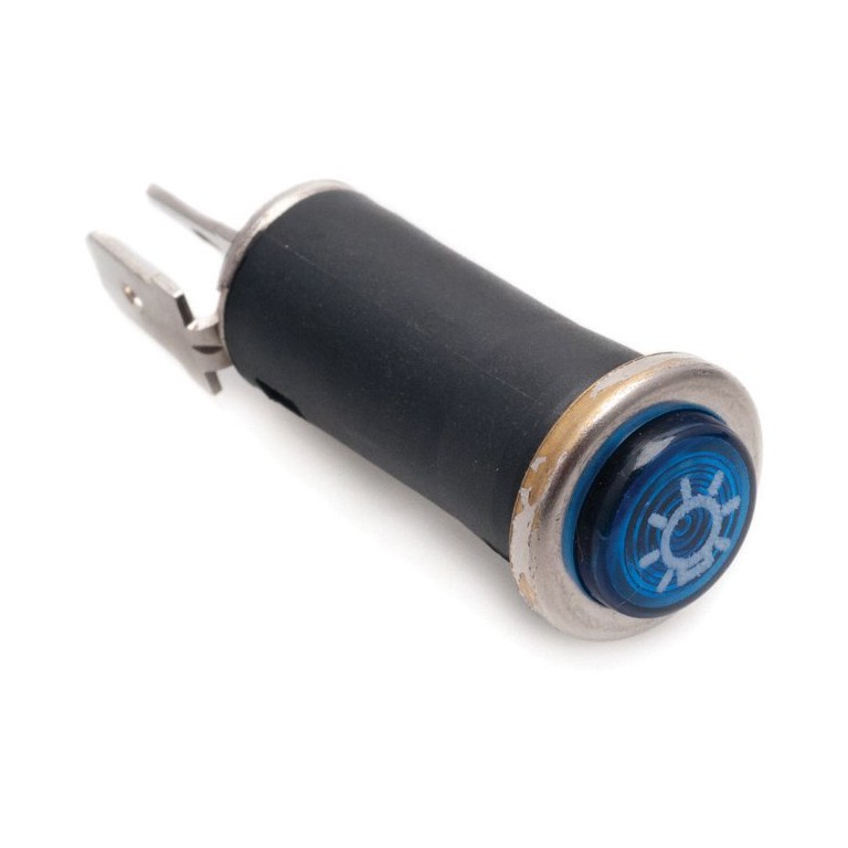 16mm diameter, requires hole 13mm diameter and a bulb LLB281 (order separately). Blue lens with bulb symbol. A range of warning lamps of this type is available with different symbols and in various colours.