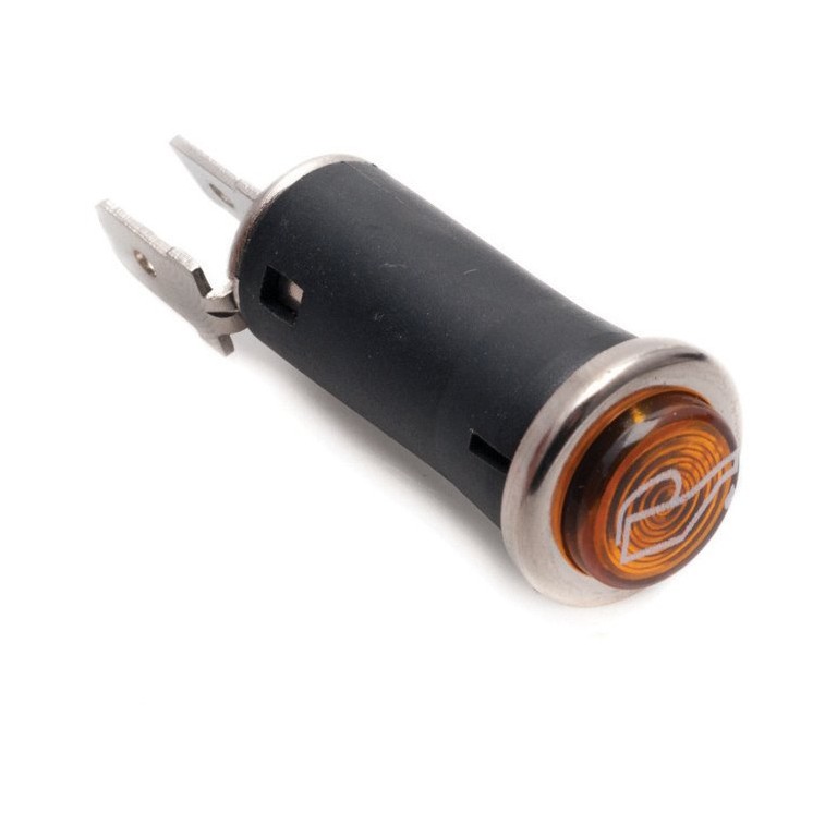 16mm diameter, requires hole 13mm diameter and a bulb LLB281 (order separately). Amber lens with oil can symbol. A range of warning lamps of this type is available with different symbols and in various colours.
