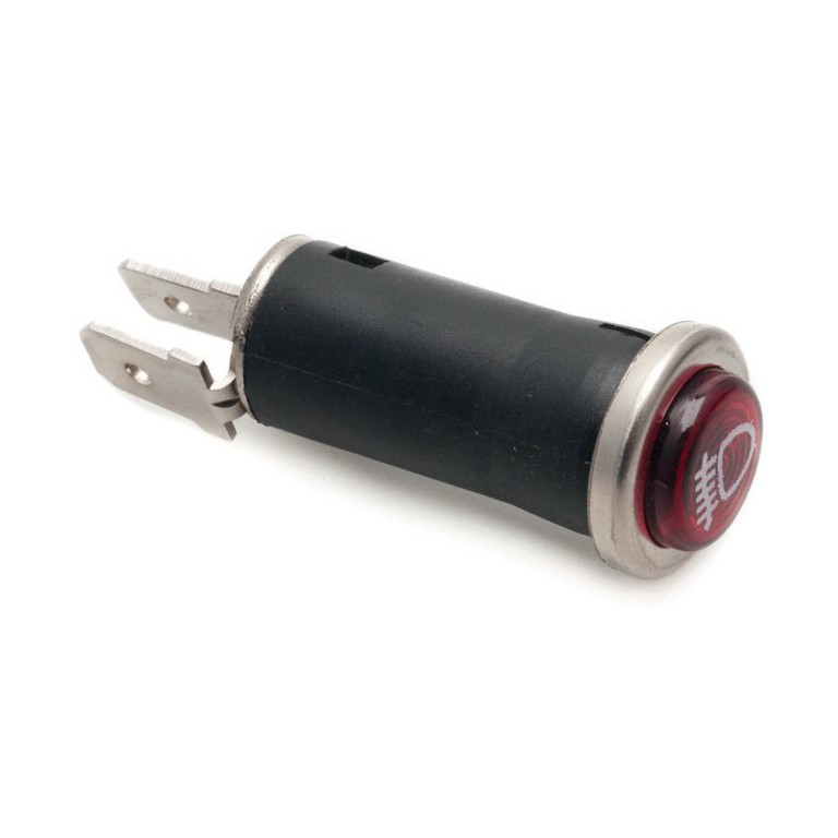 16mm diameter, requires hole 13mm diameter and a bulb LLB281 (order separately). A red lens with rear fog lamp symbol. A range of warning lamps of this type is available with different symbols and in various colours.