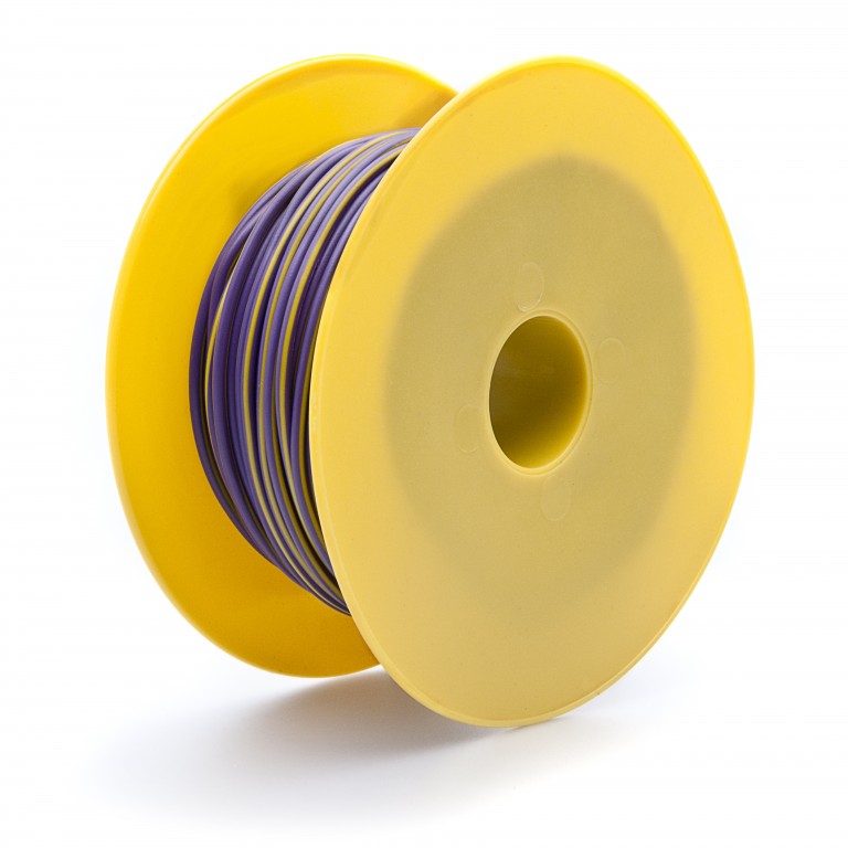 This is the correct wire to use for electrical loads up to 17 amps in vehicle applications. Nominal cross sectional area 2 square mm. PVC insulation. Purple/Yellow is used from the horn relay to the horns.