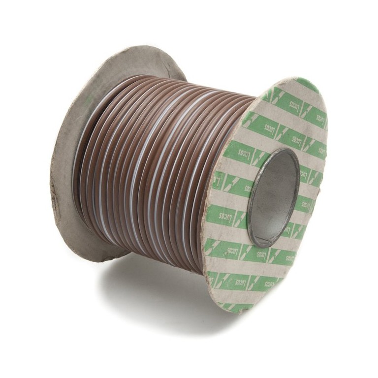 This is the correct wire to use for electrical loads up to 8 amps in vehicle applications. Nominal cross sectional area 3 square mm. PVC insulation. Brown/White is used from the ammeter to the control box.