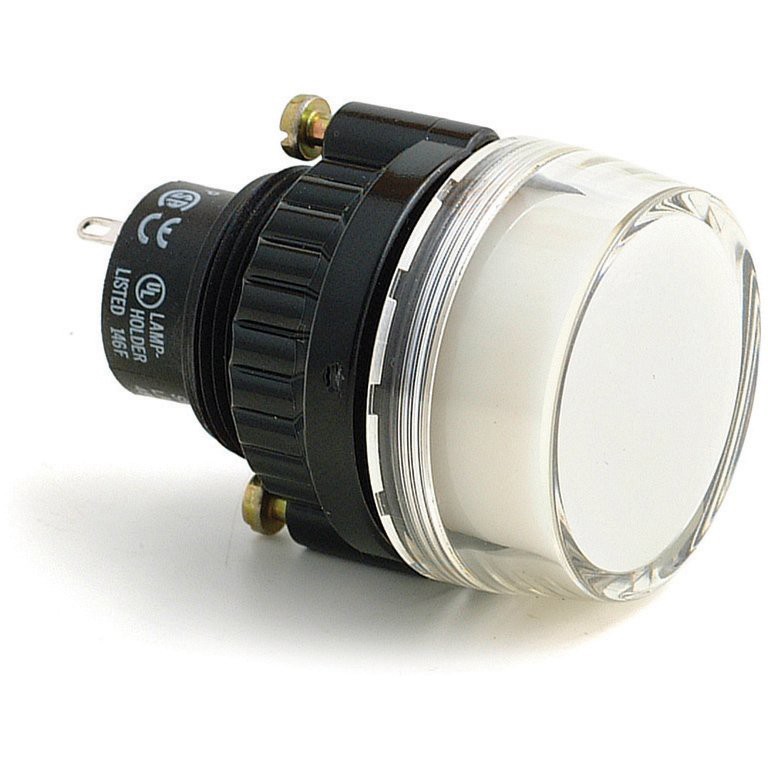 29 mm diameter, requires hole size 19 mm diameter. Has a removable diffuser under the lens which can be titled using dry print lettering if required. Other colours available are green, red, blue and amber.