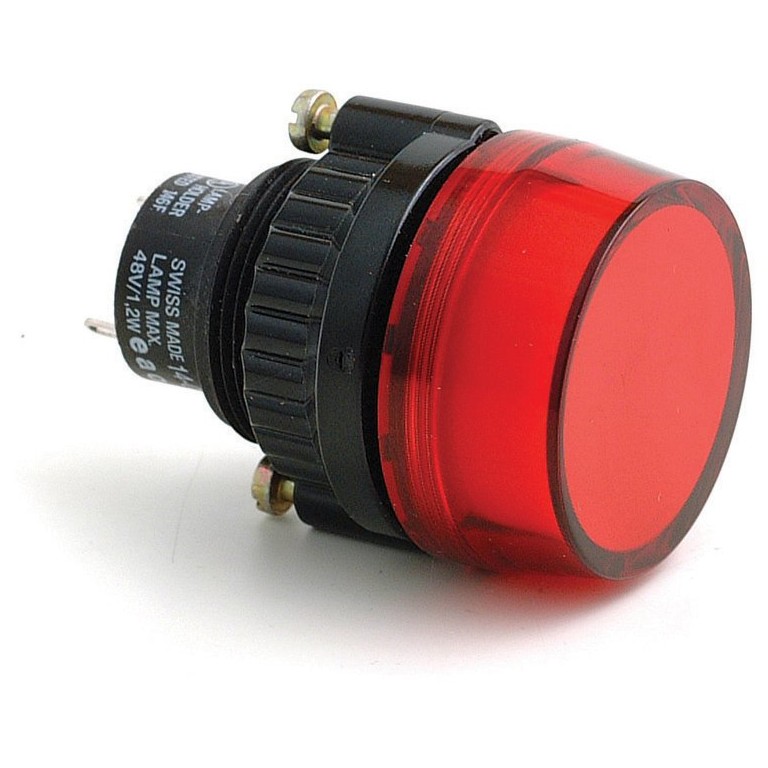 29 mm diameter, requires hole size 19 mm diameter. Has a removable diffuser under the lens which can be titled using dry print lettering if required. Other colours available are green, blue, clear and amber.