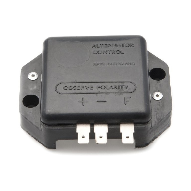 NCB144 Alternator Regulator. Quality reproduction of the Lucas 4TR three terminal alternator control for early Lucas 12 volt alternators 10AC and 11AC with the separate control unit. (Lucas originals no longer manufactured). Fitted to many cars including Triumph TR4, TR4A. Original Equipment Part No. GEU6609 Replaces: 37423, 37449, 37538, 37548, 37551, 37585, 37589, 37641, 37643, 37693, 37700.