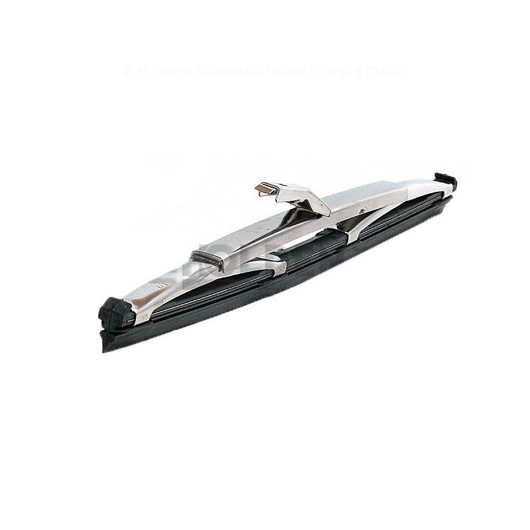 Wiper blade for curved or flat screens. Made by TEX, the only manufacturer of wiper blades remaining in the UK. The rubber is extruded to length in a die and acid etched to provide a surface that slides smoothly over the screen. The backing is stainless steel
