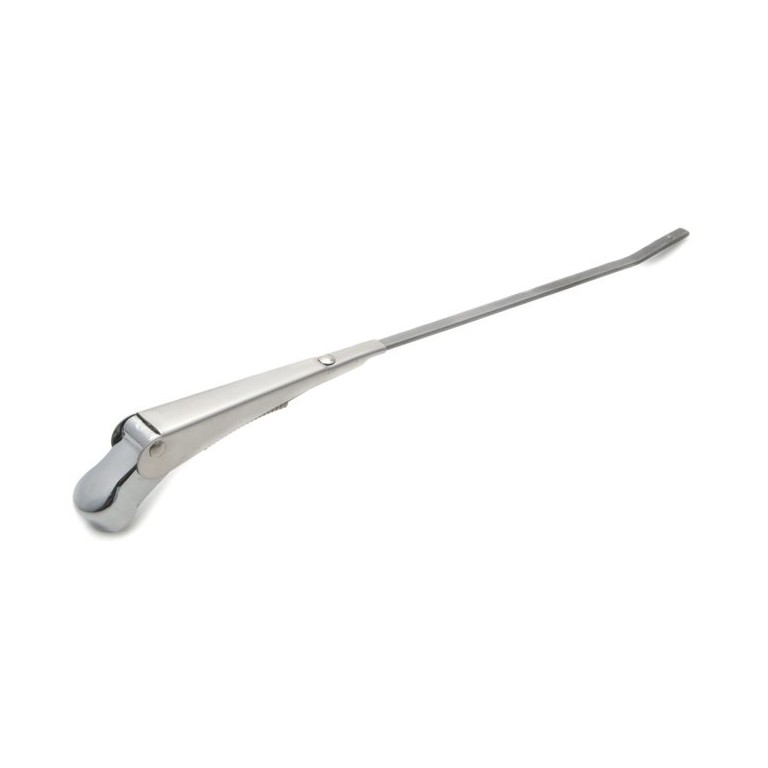 Wiper arm for Lucas 14.8mm splined shafts, 260mm long. Cranked Left. Stainless steel. For cranked right refer to 040.302. As fitted to Minis and Cobra