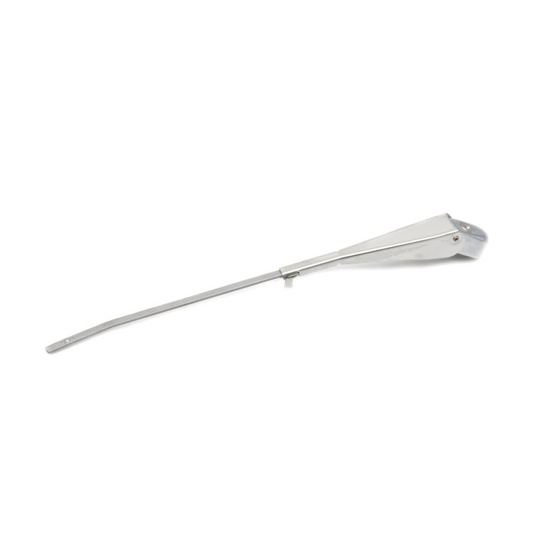Wiper arm for Lucas 14.8mm splined shafts, adjustable between 215mm and 270mm, cranked left. This arm is fitted by tightening the crosshead screw which is helpful if the splines on your wheelboxes are worn. Stainless steel. This arm can also be fitted to 1/4 diameter plain shafts by using adaptor 040.001