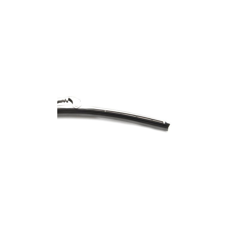 Wiper b;lade for curved or flat screens. Period style, made in two parts with a hinge in the centre. The backing is stainless steel