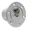 Made in silver anodised aluminium, this flush fitting filler cap graces the flanks of some of the world's most exclusive high performance cars. It is surface mounted via the included funnel / neck which is suitable for both 2 and 2.25 in hose. This cap is not vented. Supplied with cork gasket and countersunk stainless steel nuts and bolts for surface mounting. As an alternative we offer a mounting ring with captive nuts if access to the underside is a problem.. Particularly suitable for use on Kit Cars as it is flush mounting, therefore complying with the prevailing I.V.A. Regulations. A locking version is also available