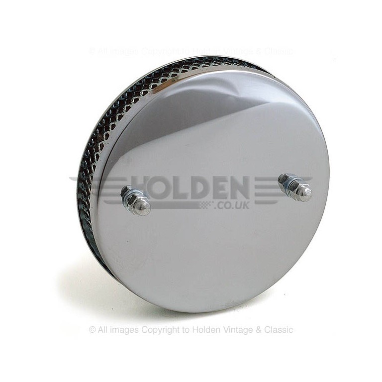 Chrome Air Filter for 1 1/4 SU carburettor HS and HS2 as used on Morris Minor 1000, MG Midget Mk I, II & III, Triumph Vitesse 1600, Spitfire Mk I, II, III, IV and 1500. This Air Filter is pierced for a breather tube from the Filter to the engine. A Breather Adaptor Kit contains both the adaptor and a blanking grommet for use when the breather pipe is not required, for this refer to 015.439. The central hole is 33 mm (1.3 in) diameter