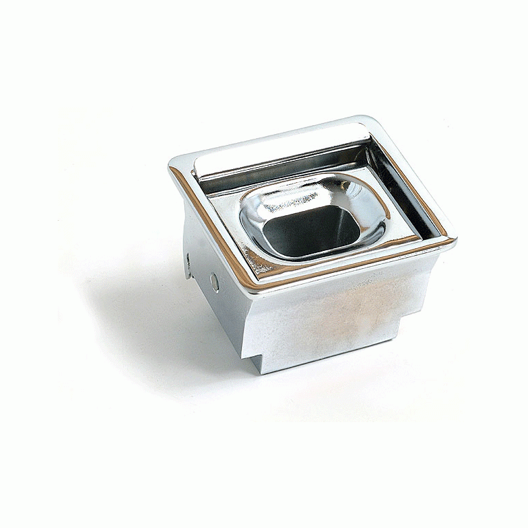 Fits BN1 to BJ8. Can also be fitted to other cars. Requires hole 61 mm x 52 mm (2.4' x 2.05'). Depth 45 mm. You will need to make up a fitting that matches up with the spring clip at the back. Lid opens by pivoting backwards. Casing and removable tray are made from castings. Lid, tray lid and surround are chromed