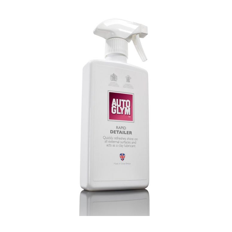 Rapid Detailer removes light dirt, restores shine, and leaves a layer of polymeric protection on surfaces. It is a superior maintenance product for all exterior surfaces, including paintwork, rubber, plastic, chrome, carbon fiber, and glass. It can also be used as a clay bar lubricant.