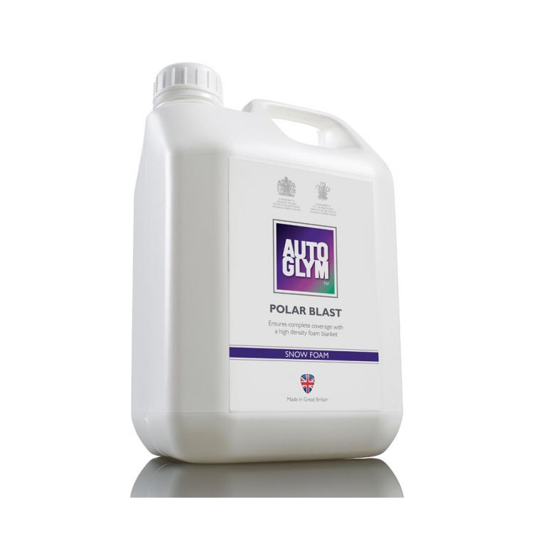 Polar Blast is a snow foam Available in 2.5 Litre which can be applied using a pressure washer or foam gun as a pre-wash stage. It covers the vehicle in a rich blanket of foam that clings to the paintwork to gently loosen dirt and heavy soiling prior to shampooing. This reduces the risk of scratches and swirl marks caused by or a wash mitt moving over heavy contamination. It's a PH-neutral formulation that will not remove any existing layers of polish or wax.
