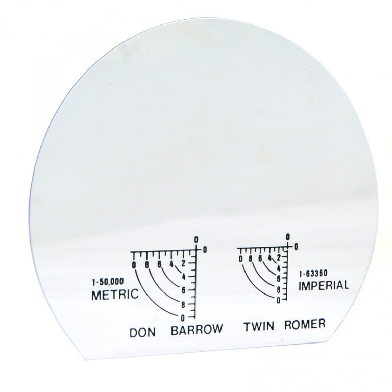Clips into the bottom of the Don Barrow Potti. Enables you to read off distances on the a 1:50,000 map in kilometres up to 5 kilometres, or on a 1 to the mile map in miles up to 5 miles. (The latter is to the scale of 1:63,360).