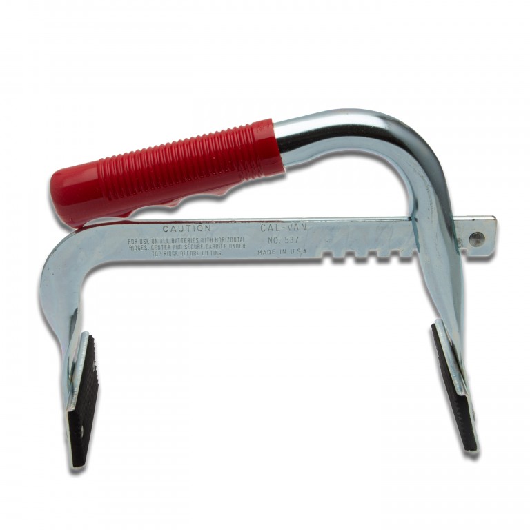 Battery Carrier with padded rubber grips, vinyl covered handle and a one size fits all adjustment.