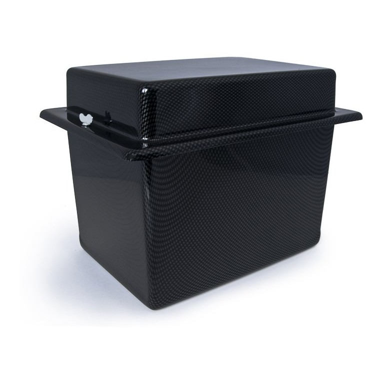 This battery box is moulded from ABS and supplied complete with lid and quick release fasteners, internal dimensions are length 260mm x width 180mm x depth 230mm. The manufacturers call this 'carbon look'. Also available in red, refer to 080.106