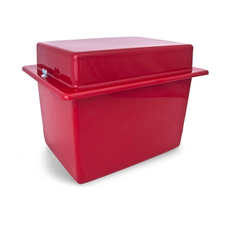 This battery box is moulded from ABS and supplied complete with lid and quick release fasteners. Internal dimensions are length 260mm x width 180mm x depth 230mm. Also available in black, refer to 080.105