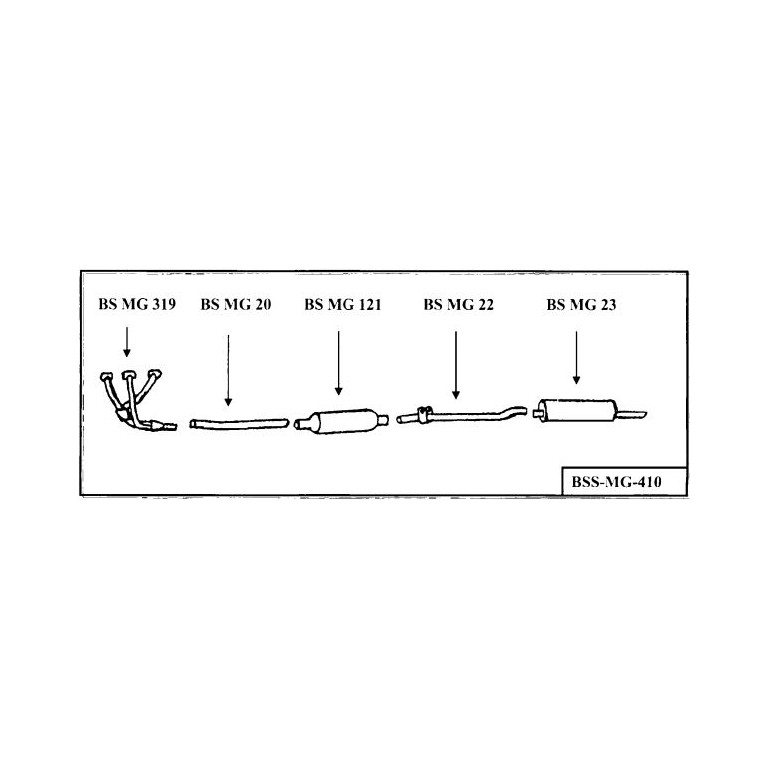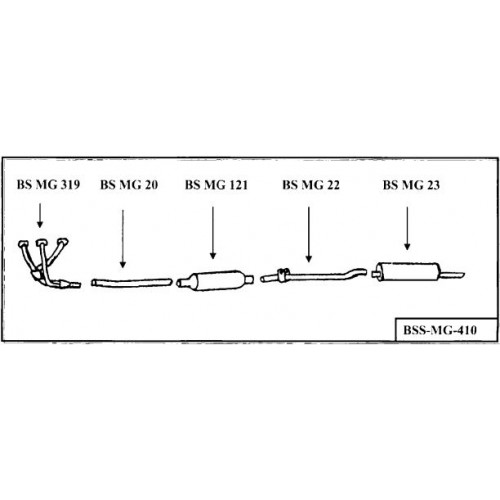 BELL MGB CHROME MANIFOLD BOMB STAINLESS STEEL EXHAUST SYSTEM. Made in England by BELL Steel UK, a leader in classic car stainless steel exhaust systems, it is engineered for an exact fit for the vehicle. Stainless Steel throughout, the silencer is 304 stainless and the pipes are 409 Stainless. Lifetime warranty by Bell against defects.