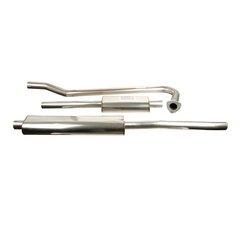 BELL TR2 TR3 TR3A TR4 (1956-1965) STAINLESS STEEL EXHAUST SYSTEM. Made in England by BELL Steel UK, a leader in classic car stainless steel exhaust systems, it is engineered for an exact fit for the vehicle. Stainless Steel throughout, the silencer is 304 stainless and the pipes are 409 Stainless. Lifetime warranty by Bell against defects.