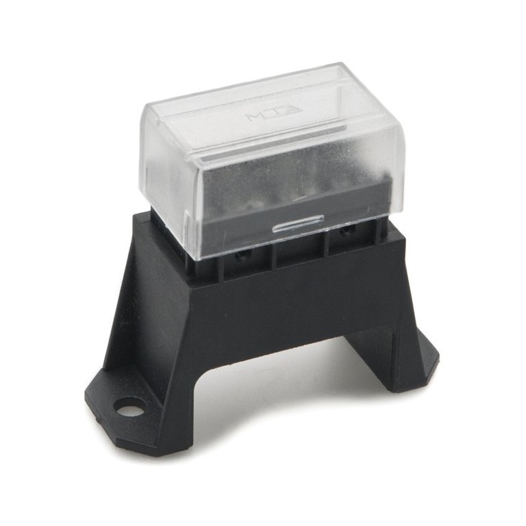 A surface mounted fuse holder for standard blade type fuses, with Lucar connections on the underside, supplied with clear cover. This holder has provision for 4 fuses