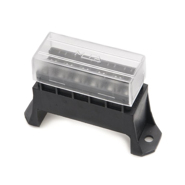 A surface mounted fuse holder for standard blade type fuses, with Lucar connections on the underside, supplied with clear cover. This holder has provision for 6 fuses