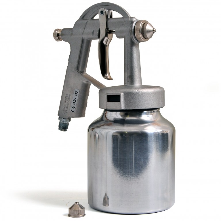 Suitable for cellulose, synthetic, enamels and light viscosity paints. With fixed and round pattern nozzles. Operating pressure 7 to 37 psi (0.5 to 2.5 bar). Fittings 1/4' BSP. Can be used with compressors without airflow regulation