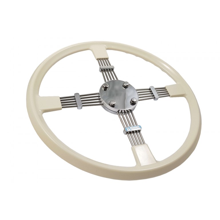 This Steering Wheel is manufactured in England using the original Bluemel tooling and traditional materials. The spokes are stainless steel with chrome separators. The rim is cream. A selection of bosses are available to fit MG and Morgan cars, as is a blank boss for machining to your own requirements.