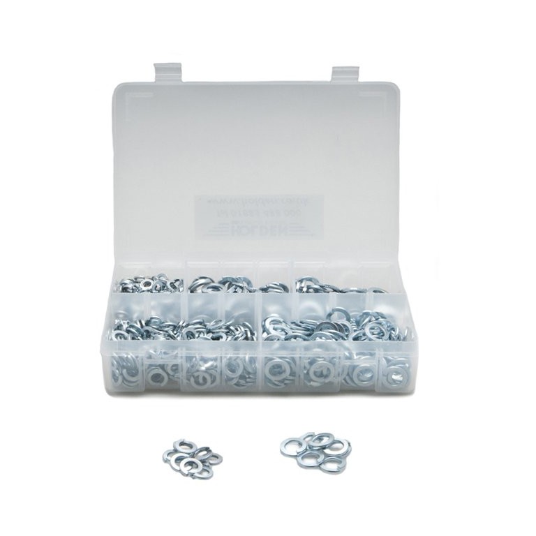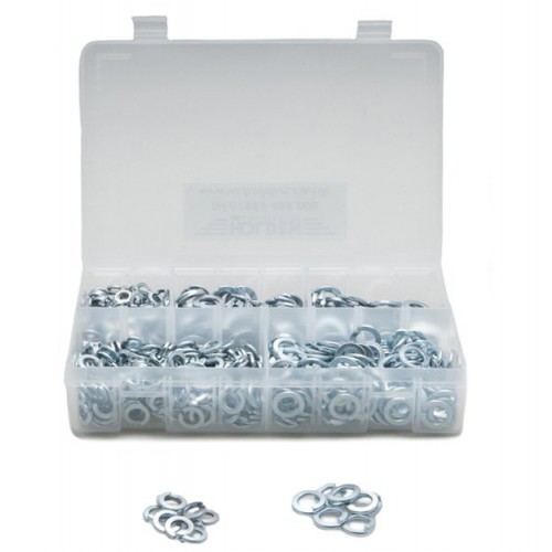 A selection of metric size spring washers, packed in a plastic box. Contains. These spring washers have the rectangular cross-section as used on classic and vintage cars