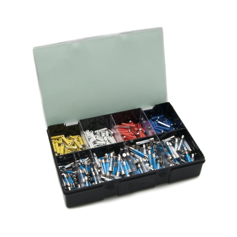 A selection of fuses in a plastic box with a clear lid. 30 off each glass fuses 5 amp, 10 amp, 15 amp, 25 amp and 50 amp and 90 off 35 amp. 50 off each continental fuses 5 amp, 8 amp, 16 amp and 24 amp. Continental fuses are the same physical size as those previously called 'Ceramic' but are now made of a hard plastic material. Ideal for your workshop.