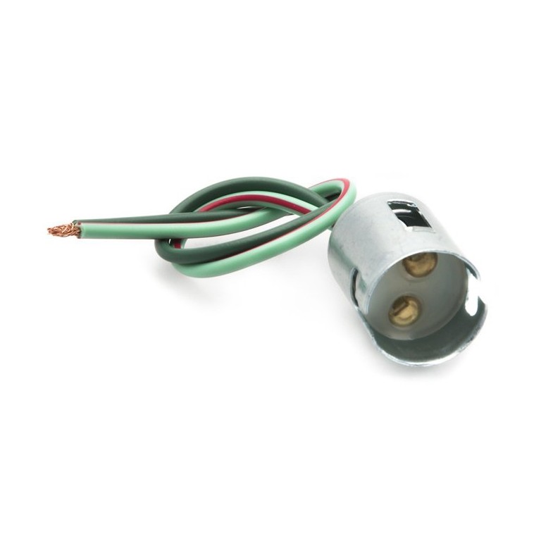 Takes double contact bulbs with BA15D cap (15mm diameter, offset type) Metal body with two 130mm flying leads. Offered as a bulb holder that you can adapt to repair an existing lamp, or to make up your own inspection lamp (for example)