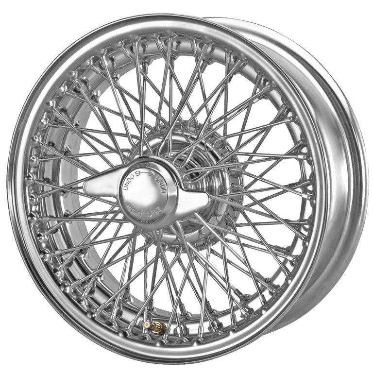 MWS chrome wire wheels for Austin Healey, MG, Panther and Triumph are manufactured using the latest multi layer nickel chrome plating techniques. The rims and shells are polished to a superior finish, which is complimented with final hand polishing by highly skilled craftsmen leaving a brilliant lustre. The stainless steel spokes and nipples are electro-polished and chrome-plated to match the colour and lustre of the rims and shells.