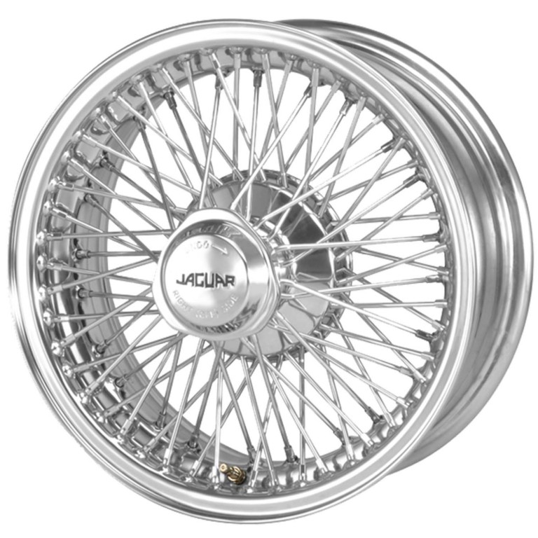 MWS chrome wire wheels for Jaguar E-Type Series III V12 are manufactured using the latest multi layer nickel chrome plating techniques. The rims and shells are polished to a superior finish, which is complimented with final hand polishing by highly skilled craftsmen leaving a brilliant lustre. The stainless steel spokes and nipples are electro-polished and chrome-plated to match the colour and lustre of the rims and shells.