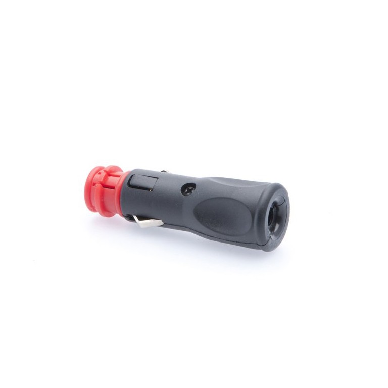 Can be used with a standard cigar lighter socket or a DIN plug. Inside it has two terminals, and a fuse. To convert it to a DIN plug you turn and remove the red part on the end. We supply it with two ring terminals to assist with wiring it up
