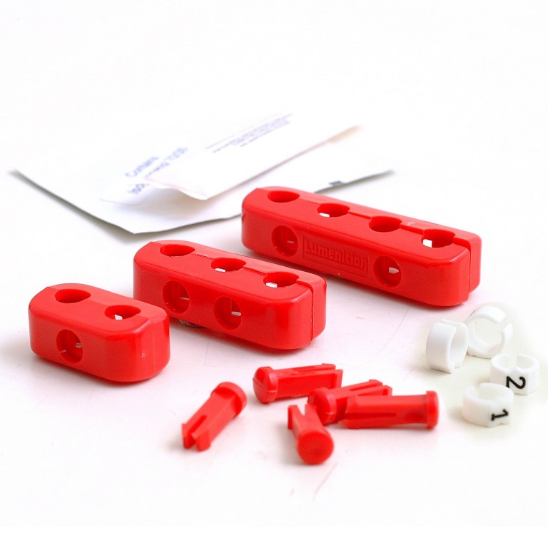 Comprises three Clamps in red plastic, each of which clips together using the pegs supplied. One for two leads, one for three and one for four leads. Also included are Cable Markers for identification of ignition leads, numbered 1 to 4. Also a sachet of Silicon Compound for application to coil and distributor covers to make a moisture seal on these connections. For equivalent in blue refer to 030.081