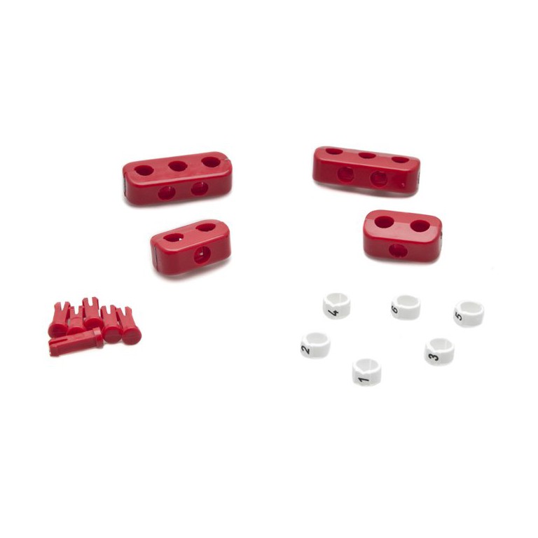Comprises four clamps in red plastic, each of which clips together using the pegs supplied. Two for three leads, two for two. Also included are cable markers for identification of ignition leads, numbered 1 to 6. Also a sachet of Silicon Compound for application to coil and distributor covers to make a moisture seal on these connections. For equivalent in blue refer to 030.094