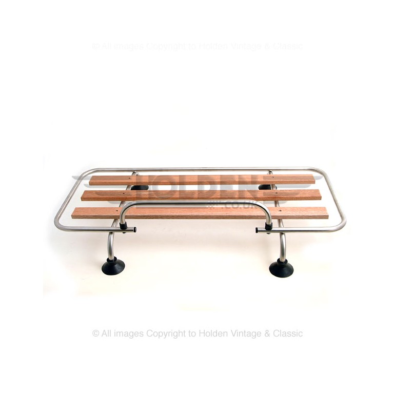 Made from polished stainless steel and guaranteed against corrosion. It sits on four rubber feet on the boot lid and is retained on the edge of the lid by adjustable clamps. Alternatively, the four feet are tapped M6 and it would be possible to bolt through your boot lid into the feet to secure the rack permanently. Platform size 880 mm wide by 375 mm deep. Will fit across boot lids from 690 to 1360 mm wide and at least 515 mm from front to back