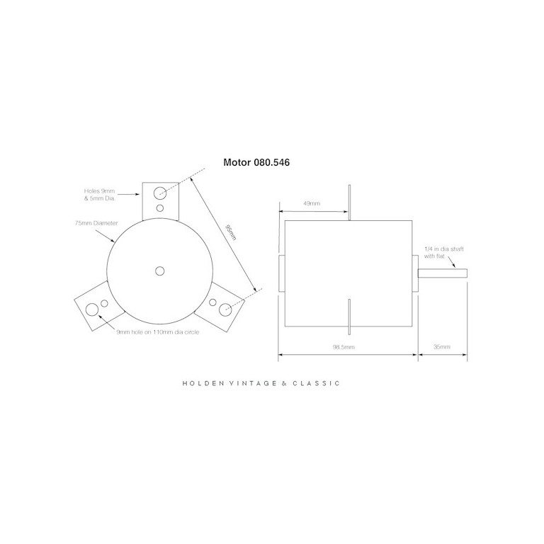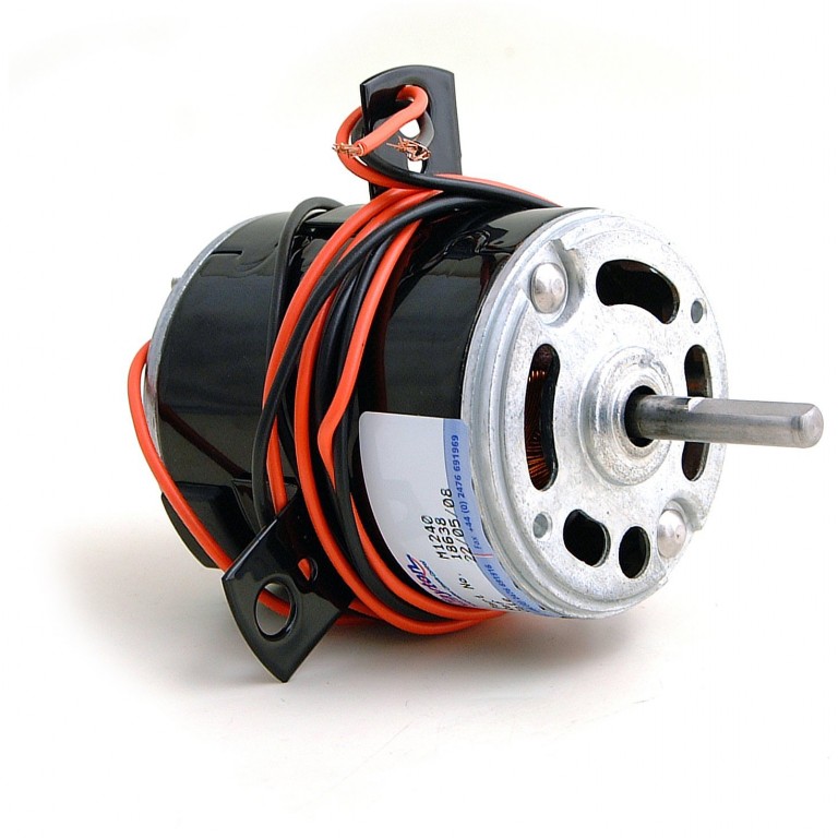 12 volt Fan Motor with 5/16 in shaft. A nice motor with cast end plates which can be wired up to rotate in either direction. Use with Mounting Plate 080.547 and Fan 080.558