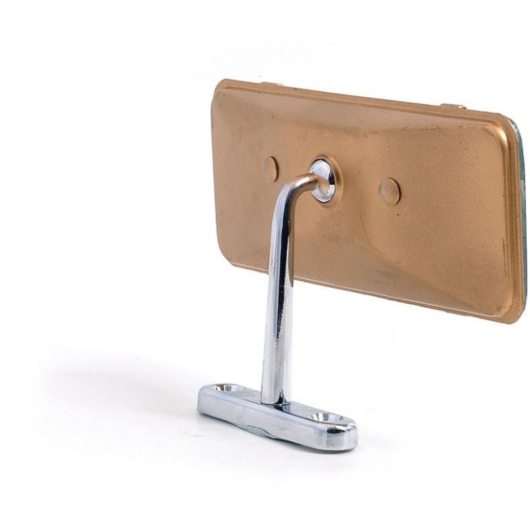 Chrome finish, in a style that fits perfectly with cars of the 1950s and 1960s. The mirror is 127 x 50mm and 91mm overall height. This style of mirror was original equipment on the MGA.