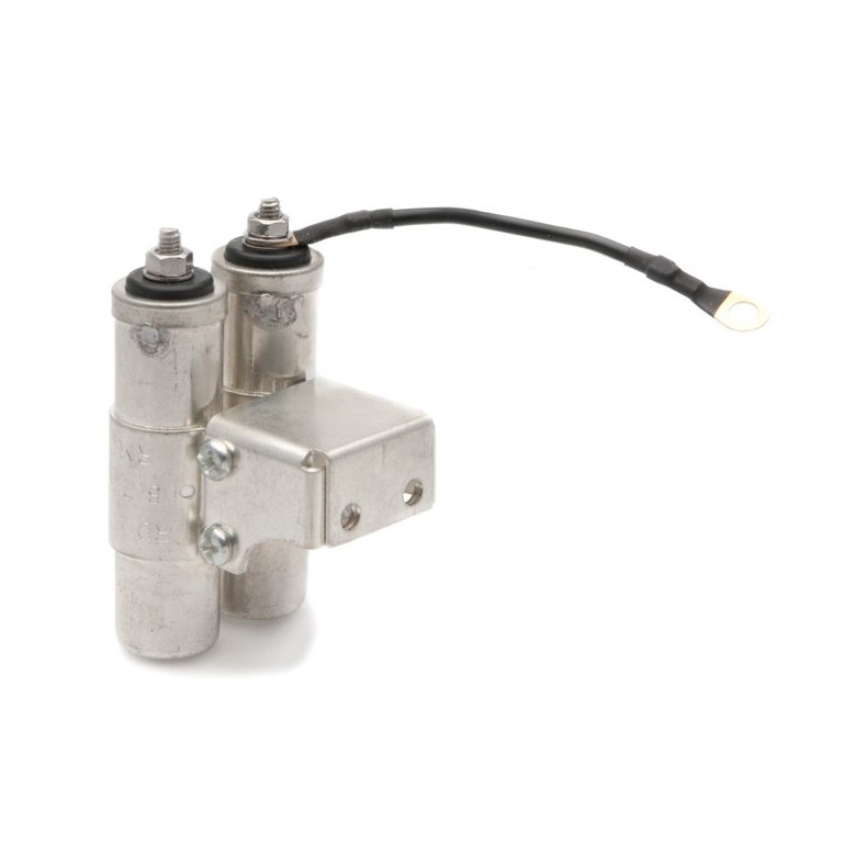 Originally the six-cylinder Bentley Mk VI, R-Type and Rolls-Royce Silver Dawn and Silver Wraith, which were fitted with the Delco Remy Distributor, had two condensers mounted on a bracket. The second one was a spare. The R-R Part No. was RD7774. Here we are offering a pair of condensers mounted on the bracket in the correct manner. The condensers have been manufactured with the correct resistance for this application