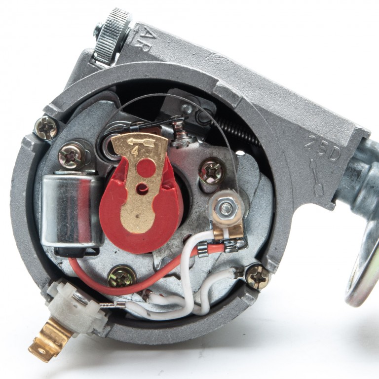A completely new Distributor with new cap, rotor, contacts, condenser, bearings/bushes, oil seals, and vacuum unit, assembled in the UK with weights and springs set to the original advanced curve and the vacuum unit set to the original specification, just as Lucas would have built it and set it up originally.