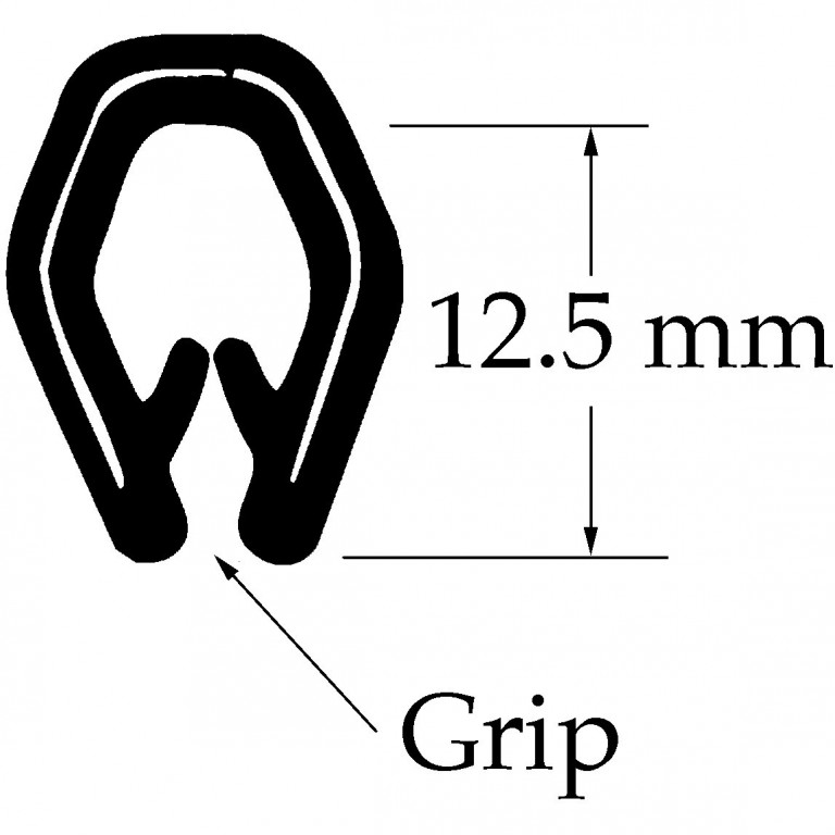 Grip range 1mm to 3mm. Goes 12.5mm over flange. Sold by the metre