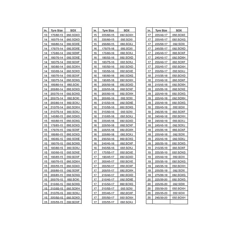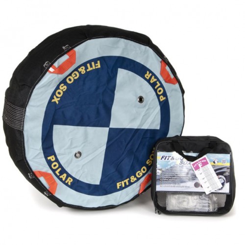A pair of textile anti skid covers, quick and easy to fit, to give you traction on snow. Includes storage bag and gloves, 1 pair per pack. Available for a large range of wheel/tyre sizes, each size fits particular wheel/tyre sizes, select size from chart below. Enter this number in the search box at top right to obtain full details of that size
